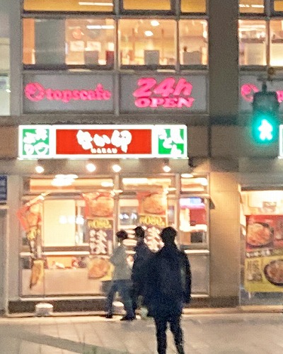 また、G2のりばのすぐ前には、ほぼ24時間営業(深夜3時から4時は閉店)の「なか卯 京都八条口店」があります。